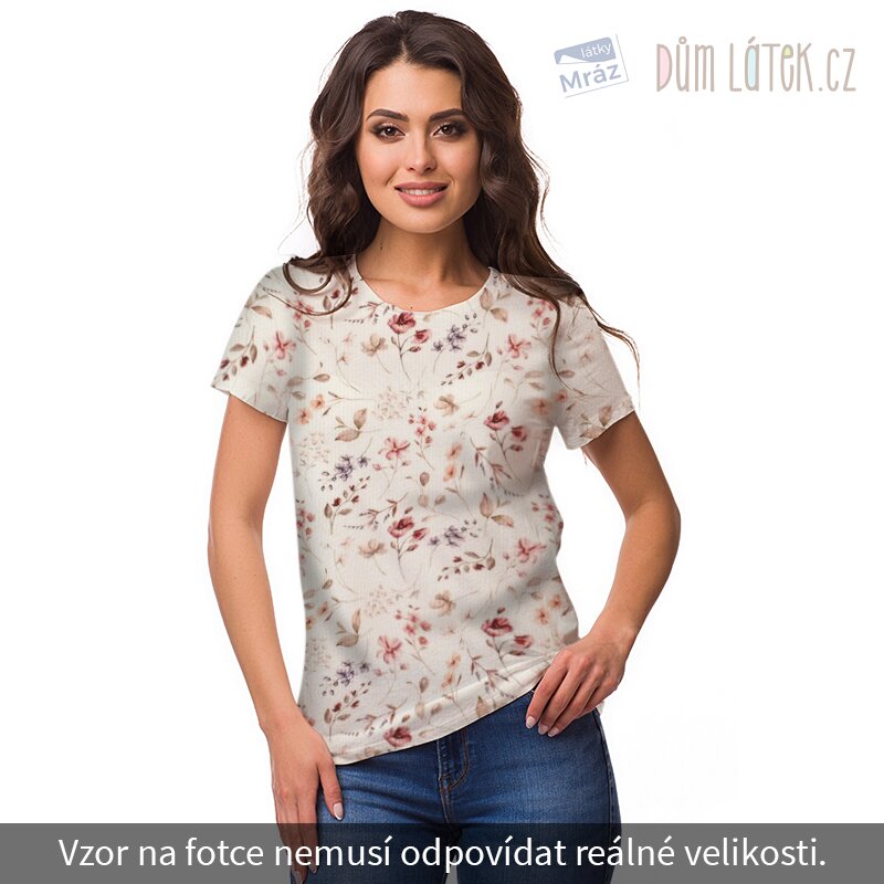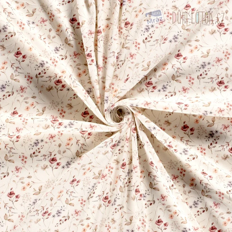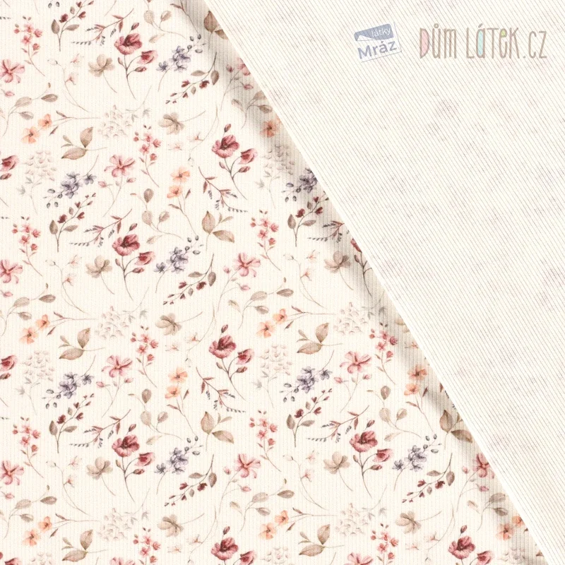 Úplet žebrovaný s květy, digitální tisk