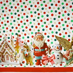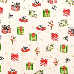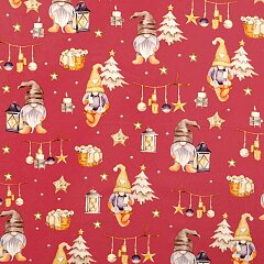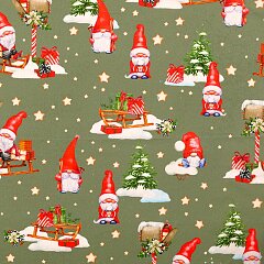 Kvalitní bavlněné plátno s vánočním motivem. Příjemná, pevná tkanina se snadno zpracovává.