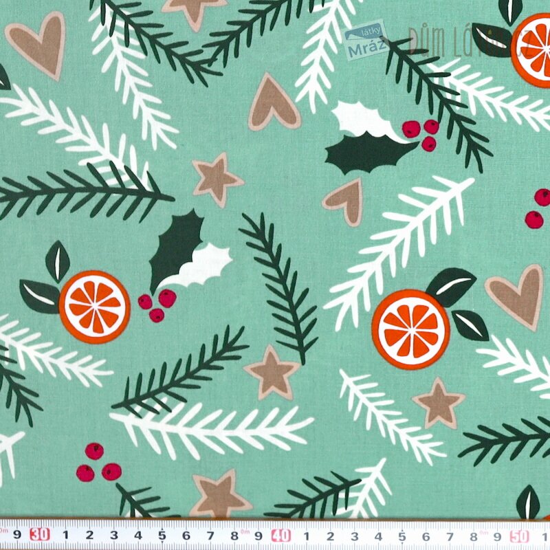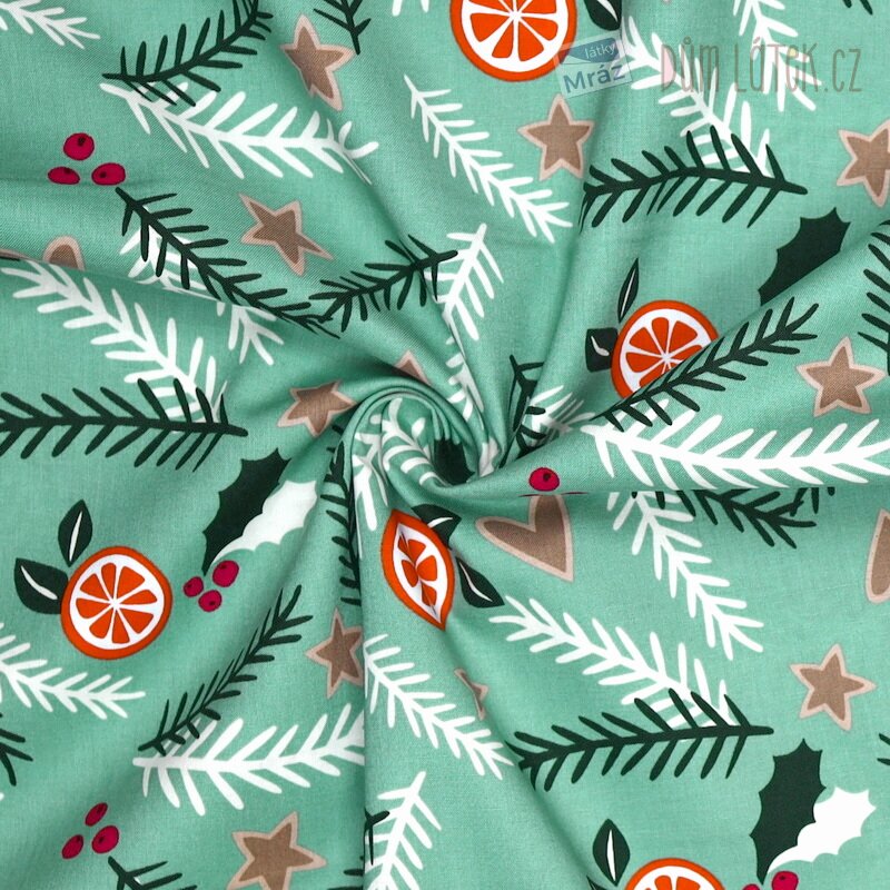 Vánoční bavlna s větvičkami a pomeranči