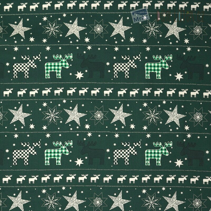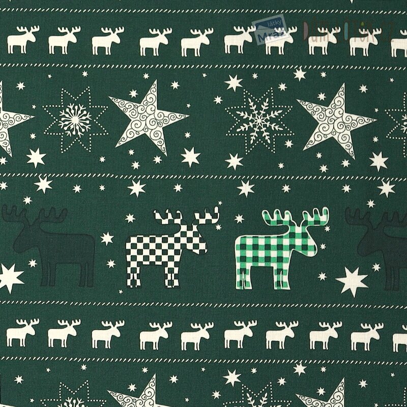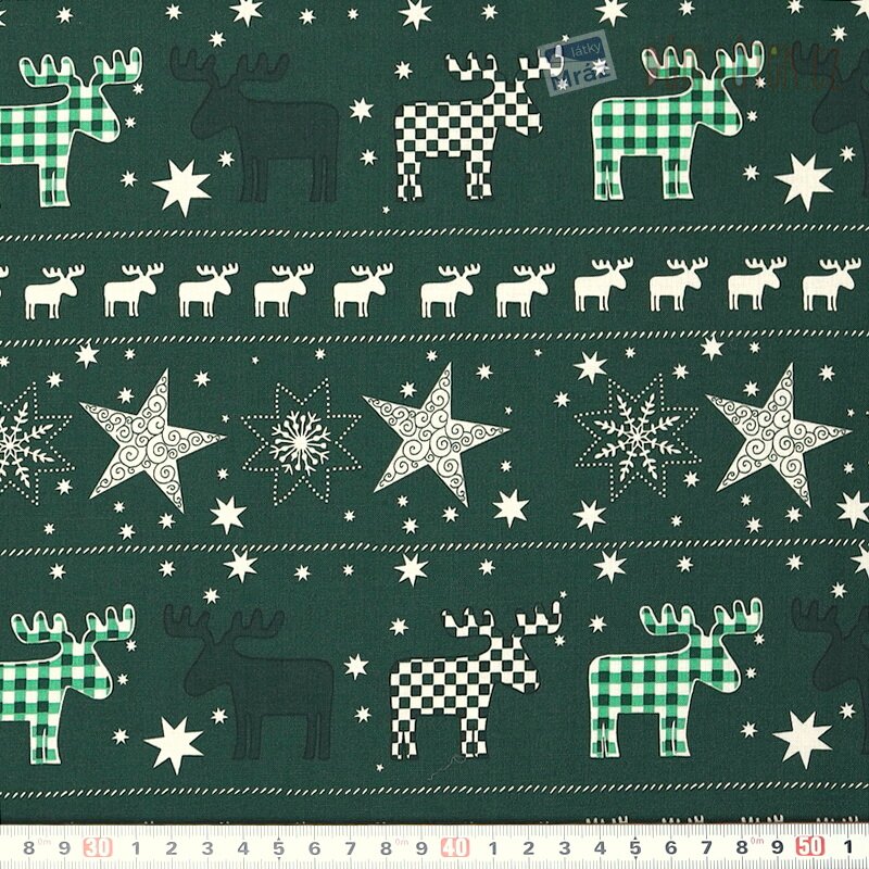 Vánoční bavlna se soby a hvězdami, digitální tisk