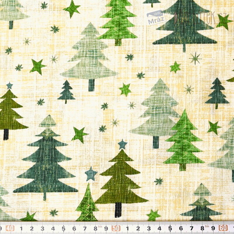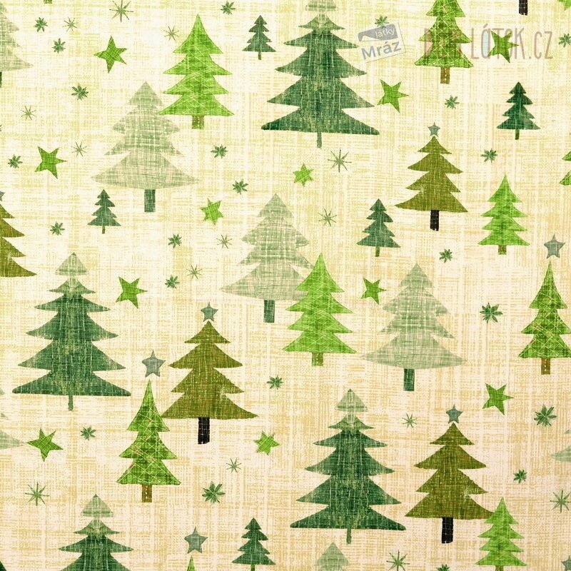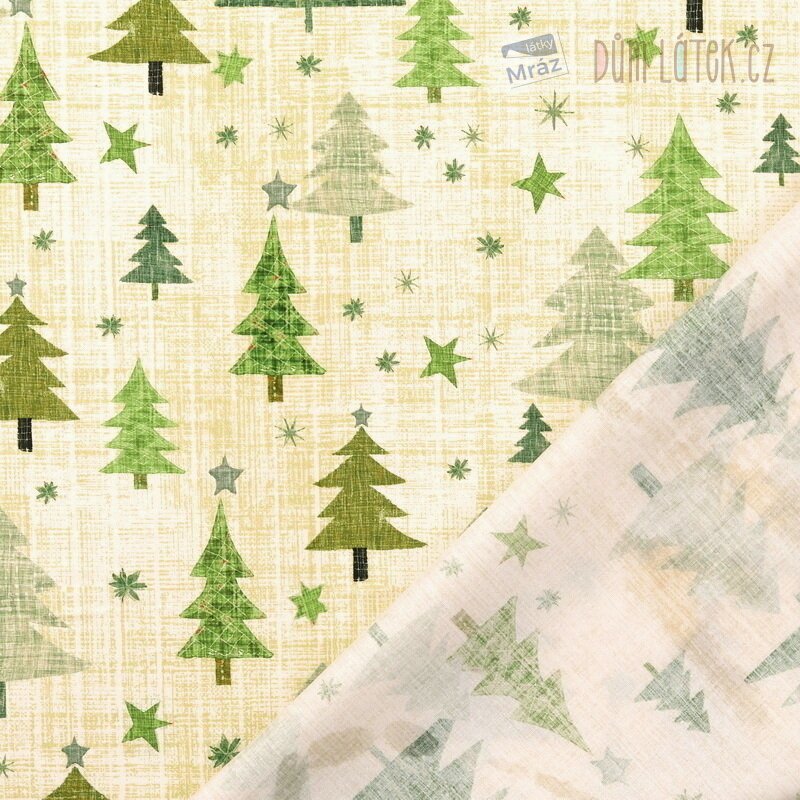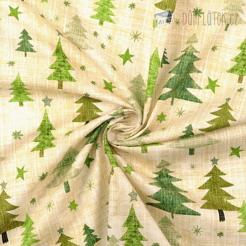 Vánoční bavlněný popelín se stromky, digitální tisk