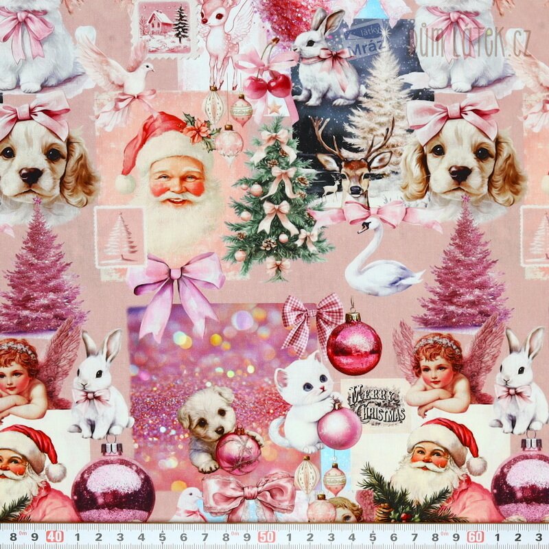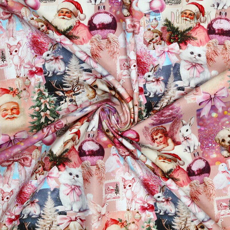 Vánoční bavlněný popelín se zvířátky, digitální tisk
