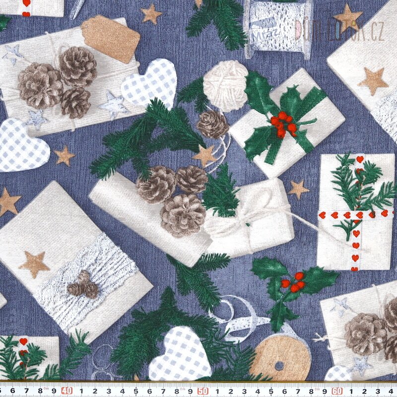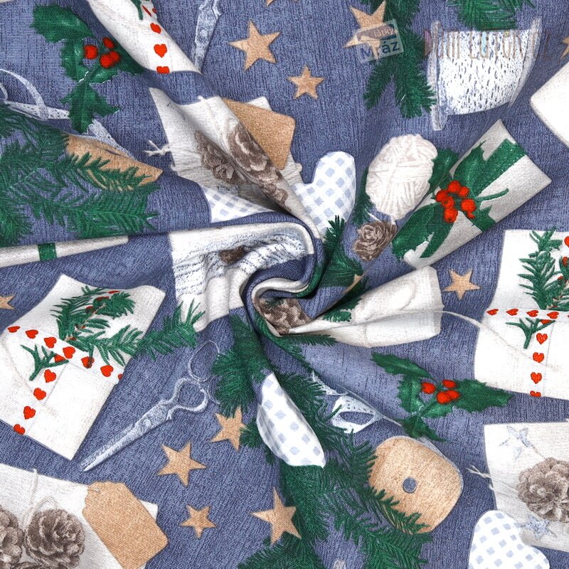 Vánoční dekorační látka je pevná, odolná a zároveň esteticky působivá tkanina vhodná pro bytové doplňky a kreativní projekty, jako jsou polštářky, ubrusy, taštičky a jiné vánoční dekorace.