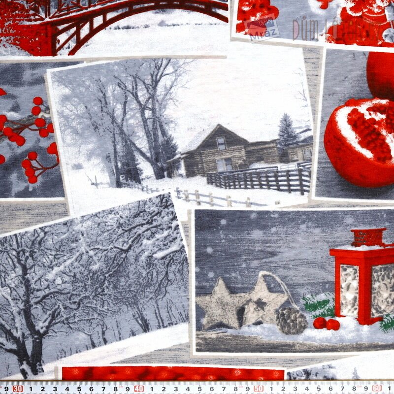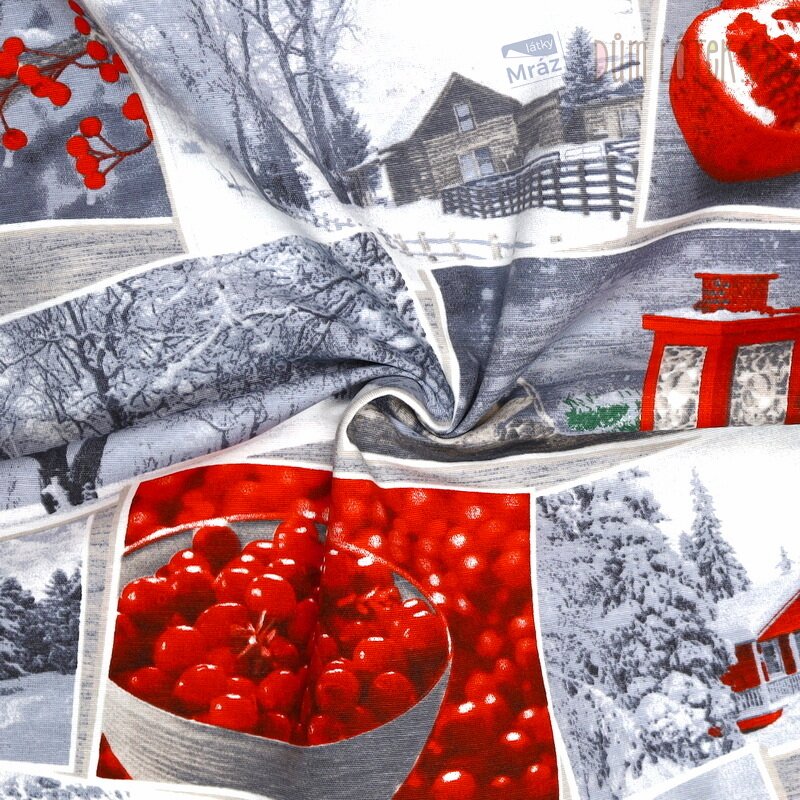 Vánoční dekorační látka je pevná, odolná a zároveň esteticky působivá tkanina vhodná pro bytové doplňky a kreativní projekty, jako jsou polštářky, ubrusy, taštičky a jiné vánoční dekorace.