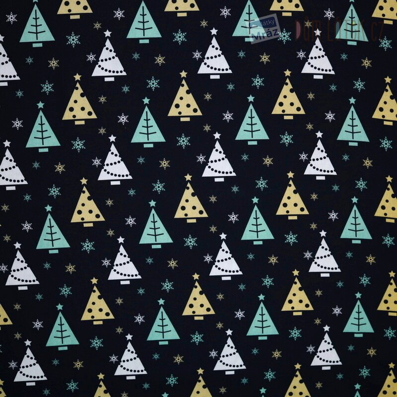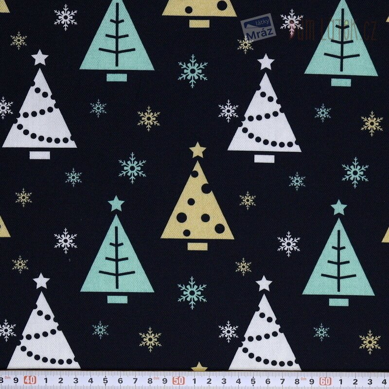 Vánoční dekorační látka se stromečky