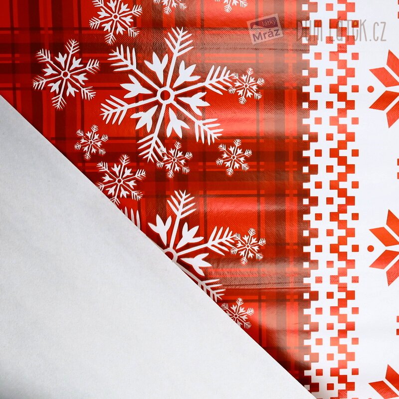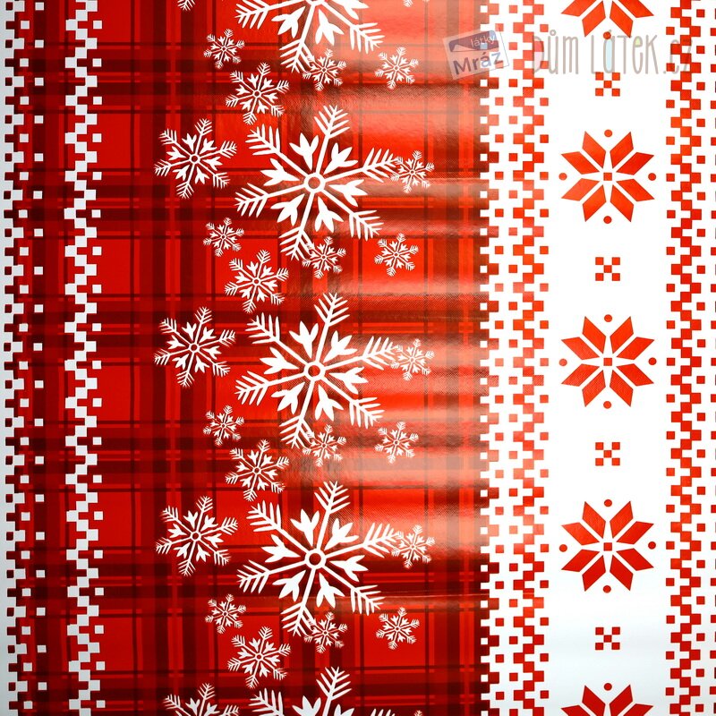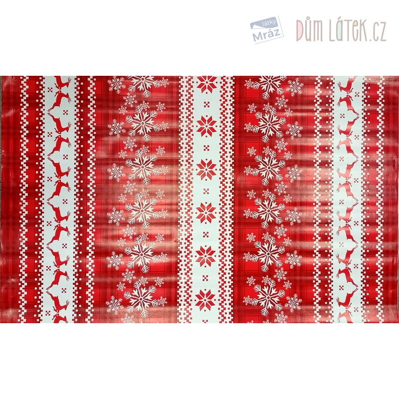 Vánoční ubrusovina PVC s vločkami a soby