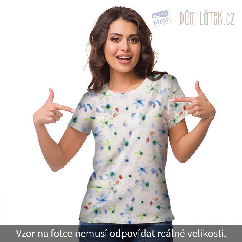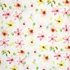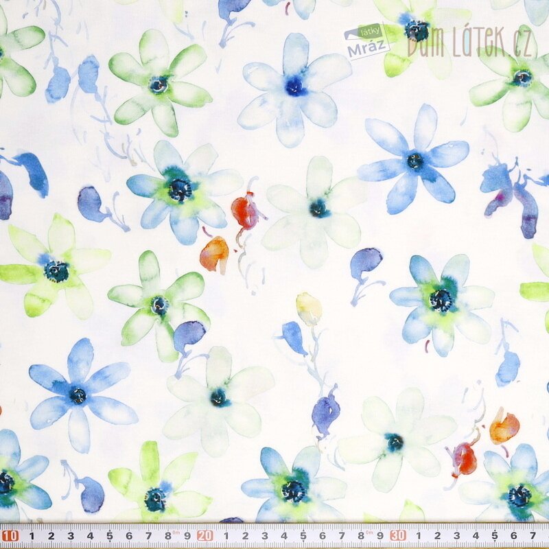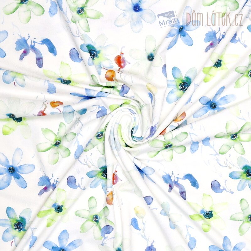 Velice příjemný úplet s květy. Látka je hladká až chladivá, vhodná do jarních či letních dnů.