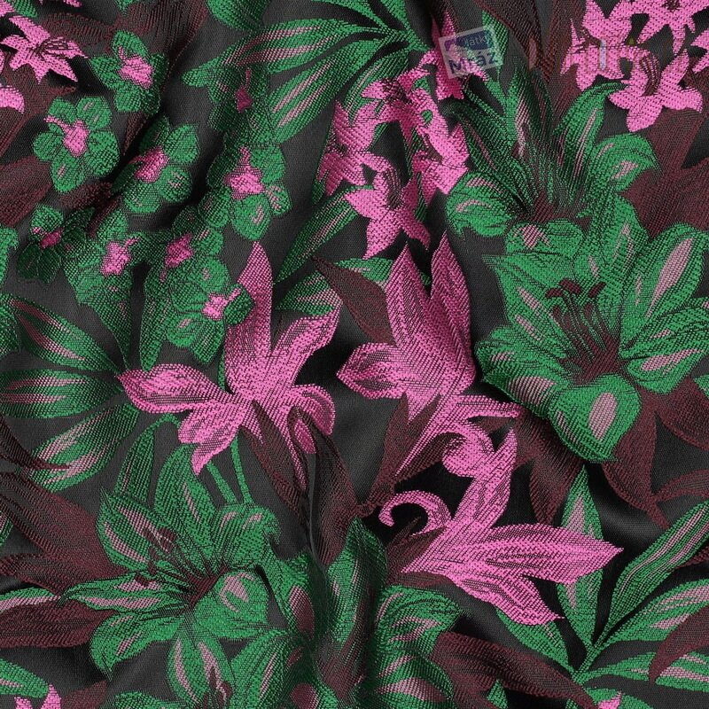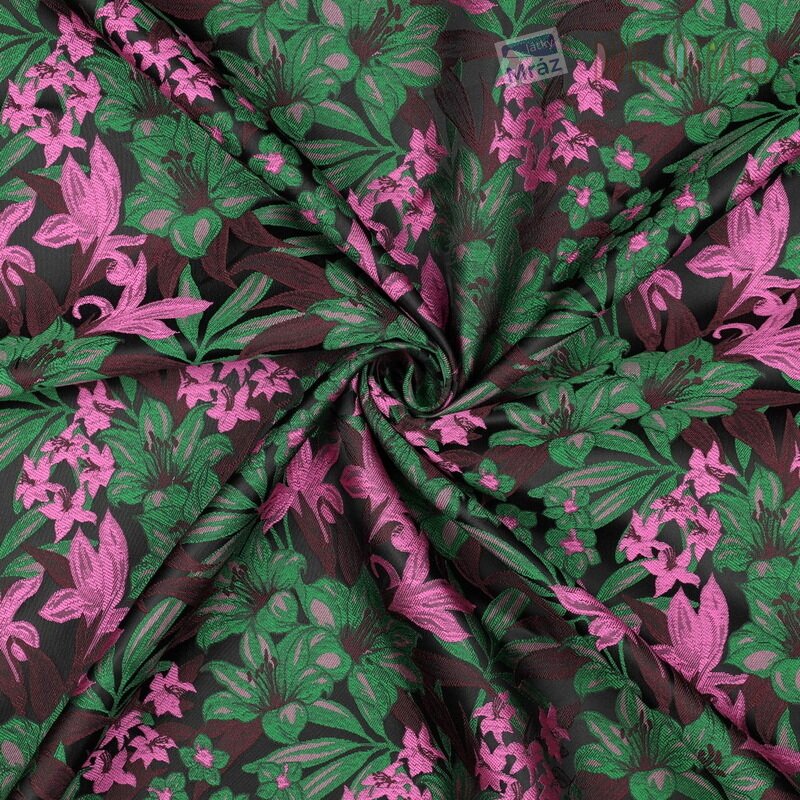 Žakár je luxusní tkanina s vetkaným vzorem, který vzniká speciální technologií tkaní. Látka je pevná, elegantní a vhodná pro oděvní i dekorační účely.