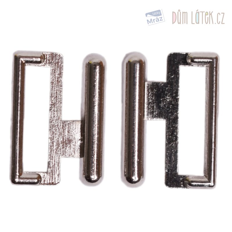 Dvoudílné plavkové kovové zapínání, rozměry při zapnutí 19x19x3mm. Průvlek 13 mm.