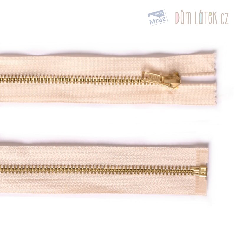 Zip mosazný dělitelný krémový 40 cm